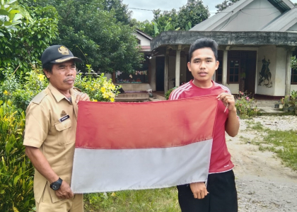 UPTD SDN 110 Saele berbagi bendera ke warga sekitar